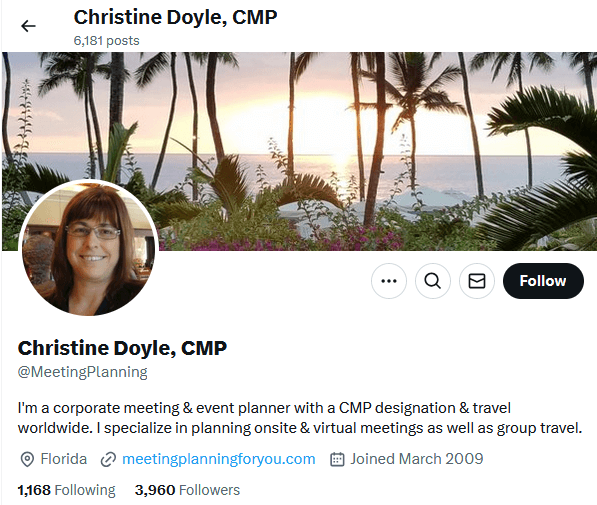 Christine is a meeting and event planner from Melbourne, USA.