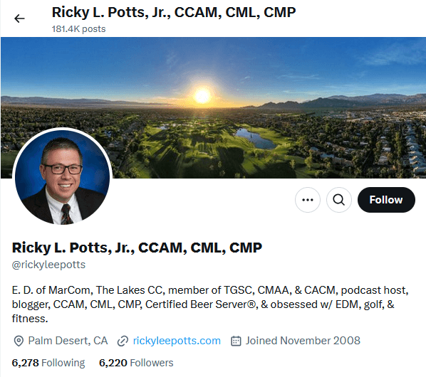 5- Ricky L. Potts, 6,220 followers