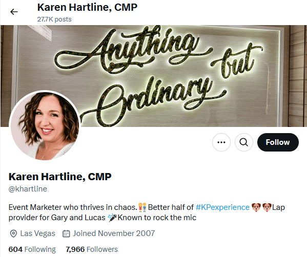 4- Karen Hartline, 7,966 followers