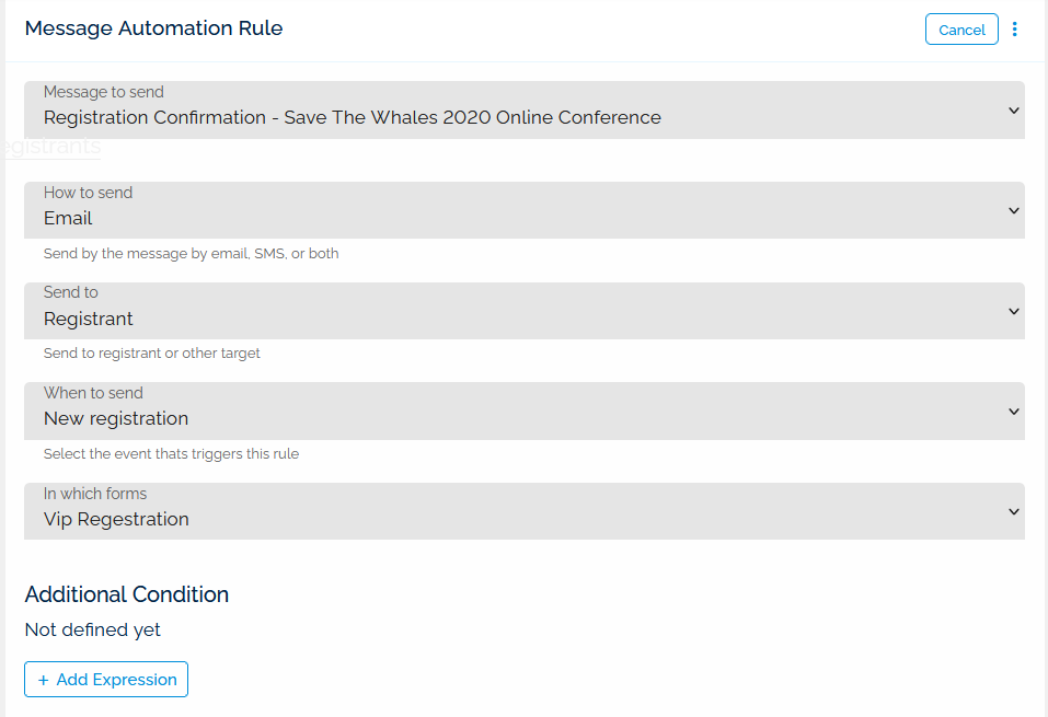 When you want to send a message to all registrants, you can include the token {Account.First Name}. This ensures that each registrant receives an email or SMS with their name, as provided during registration.